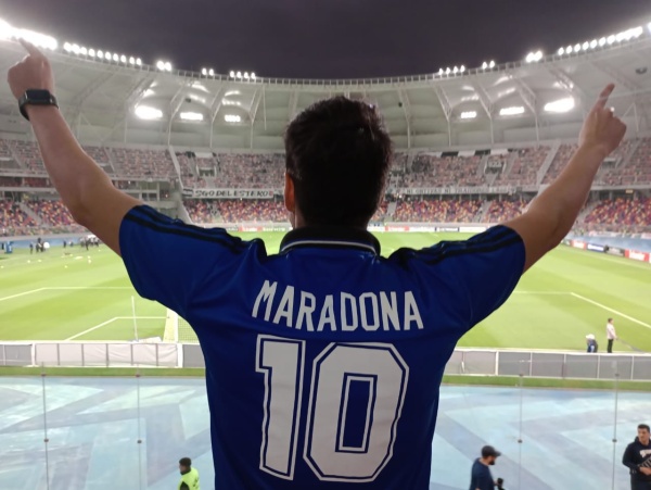 El Diego también dijo presente, con los hinchas que lo llevan en sus espaldas.