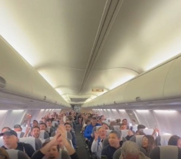 Quienes viajaron en avión inundaron de felicidad y cánticos todo el vuelo.