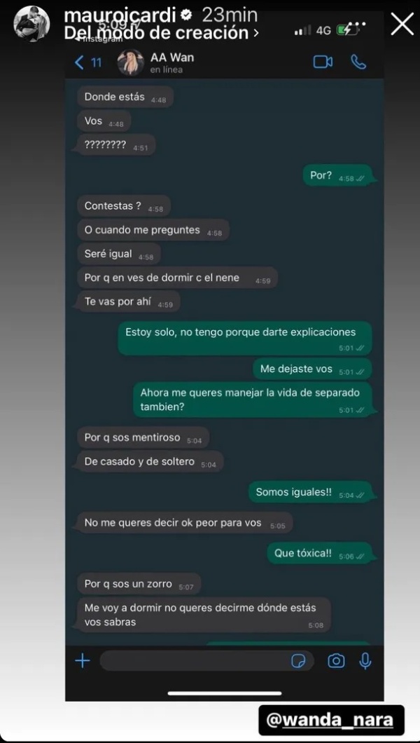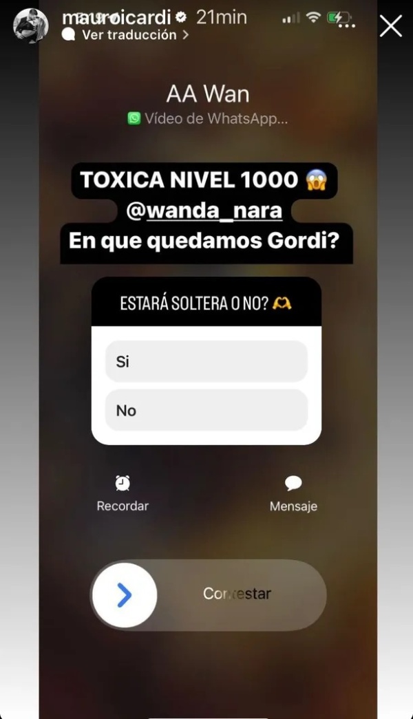 A pesar de estas historias, los últimos posteos de Icardi y Wanda Nara muestran que estaban realizando una videollamada y la frase "Te amo Toxi". Eso indica que realmente no se separaron y que es todo un "circo" montado para la prensa, como anteriormente lo mencionó la pareja.