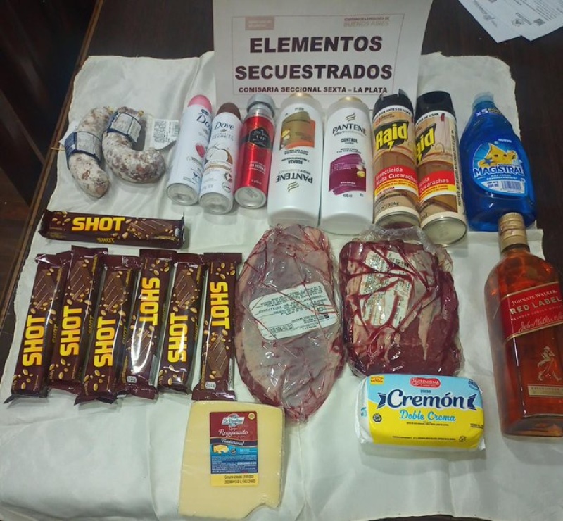 Cuando hicieron la revisión correspondiente, se encontró un whisky, siete chocolates, dos longanizas, dos cortes de queso, dos cortes de carne, cinco productos de higiene personal, un detergente y dos insecticidas.