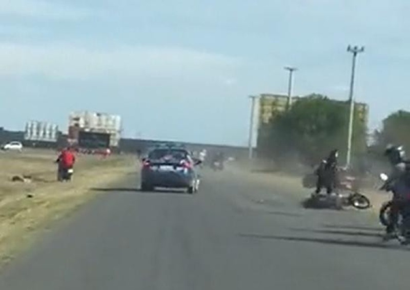 En el video que se volvió viral entre los internautas se puede ver como una cantidad de motoqueros iba por la autopista de Santa Fe. Estos eran seguidos a un costado por patrulleros.