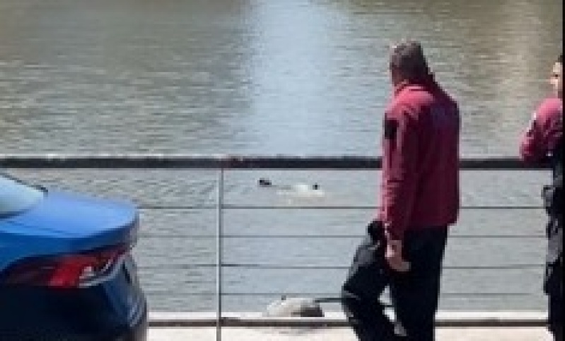 En el video se puede observar como el joven intenta flotar para no ahogarse mientras que los policías, consternados por lo que acababa de pasar, intentaban conseguir una manera de atraparlo nuevamente.
