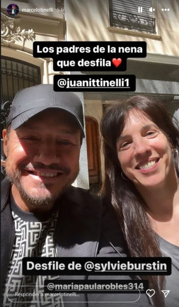 “Los padres de la nena que desfila”, escribió Tinelli en varias postales que subió a Instagram Stories, desde el lugar donde Juanita fue una de las modelos que dijo presente para modelar alguno de los diseños de la nueva colección de Sylvie Burstin.