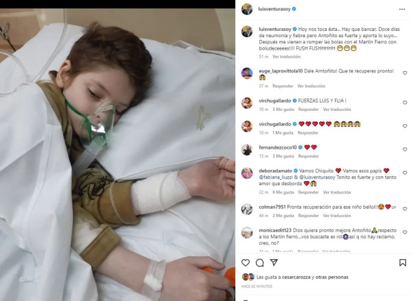 Fue internado por una neumonía el hijo de Luis Ventura: “Hoy nos toca esta... Hay que bancar"