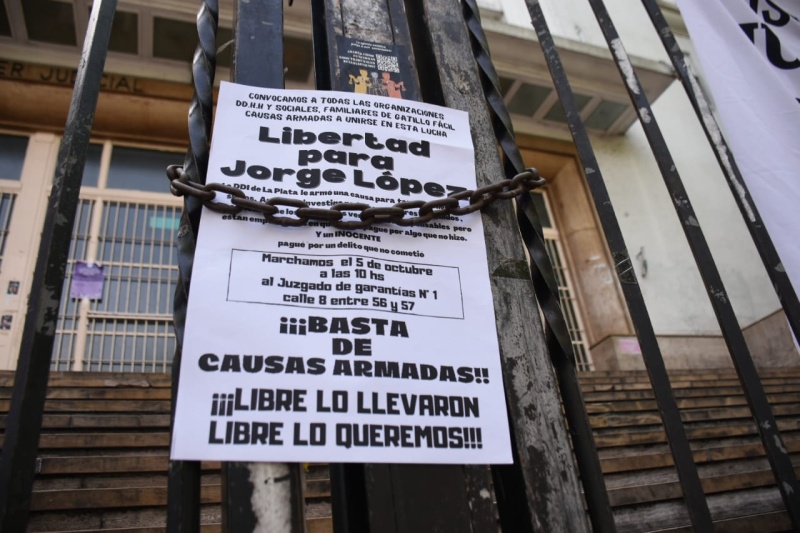 “Hoy nos encontramos marchando por Jorge López, pidiendo que los jueces lean la causa, a Jorge López lo están acusando de un robo en marzo en la calle 11 y 60, ese día Jorge estaba en una sesión de rehabilitación porque tiene la mano operada y tiene problemas en la mano”, indicó en diálogo con LAPLATA1.com, Mariela Portugués.