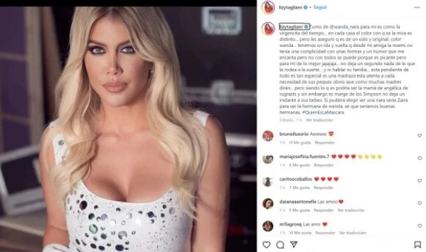 Después de este picante ida y vuelta que protagonizaron las integrantes de ¿Quién es la máscara?, Lizy posteó una foto de Wanda y le dedicó una conmovedora dedicatoria.