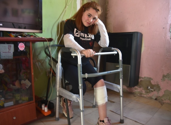 Perla recibió 72 puntos por las mordeduras que recibió en distintas partes del cuerpo y, como consecuencia de las lesiones en sus piernas, debe usar un andador para poder caminar.