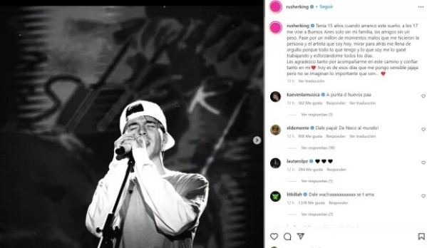 "Les agradezco tanto por acompañarme en este camino y confiar en mí, hoy es de esos días que me pongo sensible pero no se imaginan lo importante que son", les dijo "Rusher" a sus fans, sensibilizado.