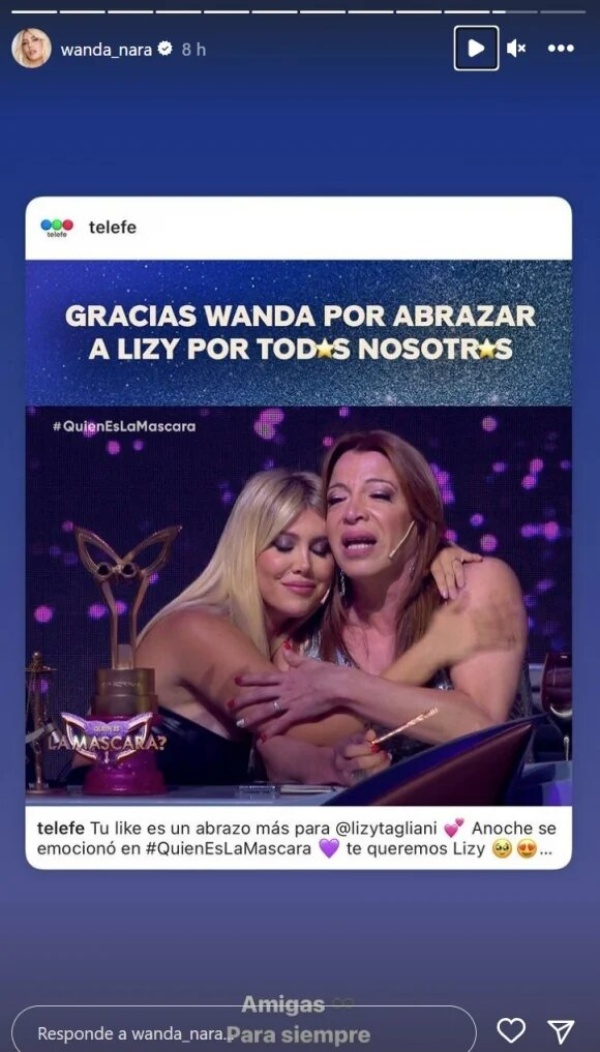 "Amigas para siempre", Wanda Nara le envió un dulce mensaje a Lizy Tagliani