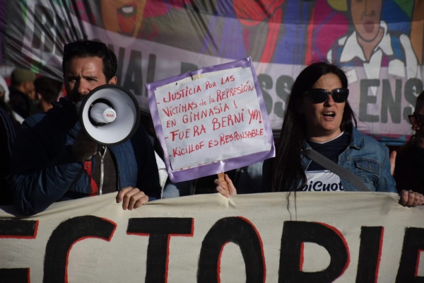 En la manifestación se hizo presente cientos de vecinos y vecinas que se vieron movilizados por la brutal represión policial vivida la semana pasada en la cancha de Gimnasia.