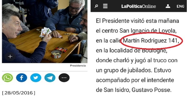 La llegada de Macri al lugar se dio en el año 2016, a meses de haber asumido como primer mandatario argentino y en plena primavera para su gestión como Presidente de la Nación. En ese marco y haciendo campaña para el Programa Nacional de Reparación Histórica para Jubilados y Pensionados, Macri visitó el centro San Ignacio de Loyola, en la calle Martín Rodriguez 141, en la localidad de Boulogne, donde charló y jugó al truco con un grupo de jubilados, informaba 168 horas, un medio de la localidad.