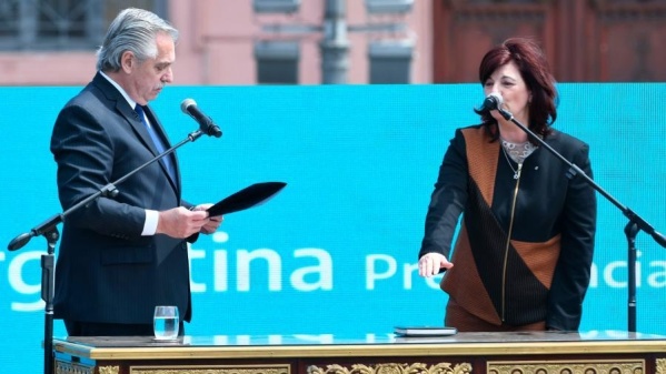 "Queremos una patria donde se termine la desigualdad y se respete la identidad de cada uno", dijo tras tomarle juramento. Tolosa Paz, bonaerense y platense, de 49 años de edad, es contadora pública, y fue electa diputada nacional por la provincia de Buenos Aires en los comicios de 2021.