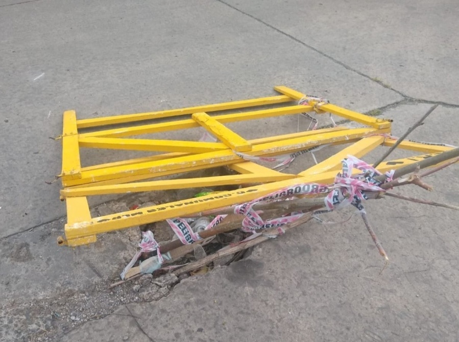 Aseguran que está tapado de manera casera con palos y vallas, y que es muy peligroso porque tiene dos metros de profundidad.