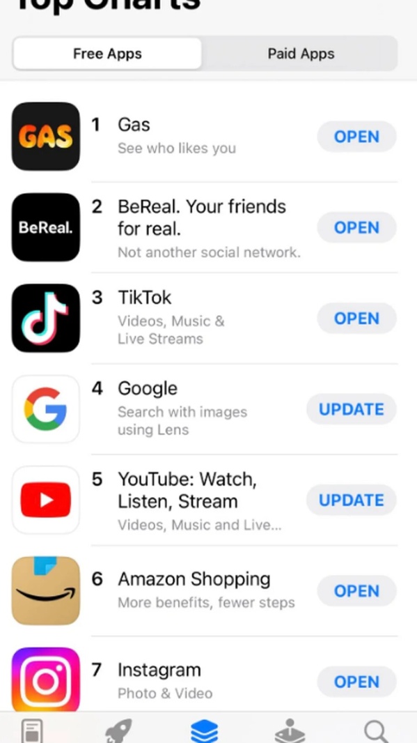 Una nueva aplicación sacó del primer puesto a BeReal y TikTok. Si has consultado últimamente las listas de descargas del iPhone en EEUU, te habrás fijado en una aplicación de aspecto misterioso que encabeza la lista, llamada Gas. No te ayudará a encontrar gasolina barata, y ni siquiera puedes acceder al servicio en la mayoría de los estados. Gas es la red social del momento entre los estudiantes de secundaria estadounidenses.