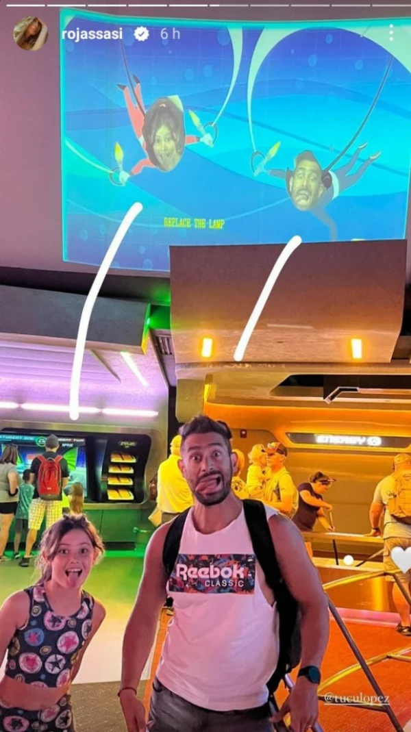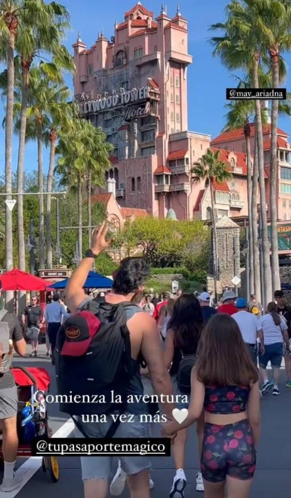 "Comienza una aventura más", expresó al pie de las fotos en las que se los ve en los parques temáticos y abrazados a los personajes de Disney.