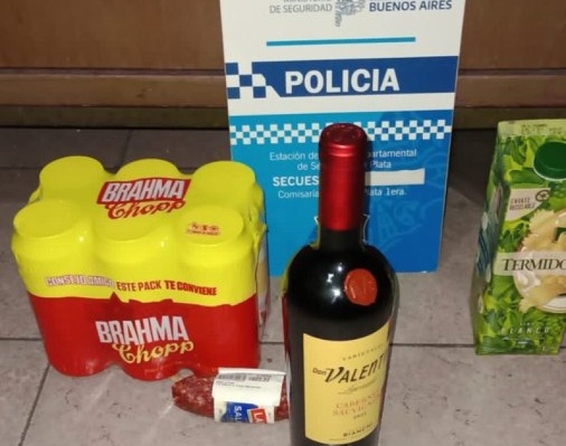 Según informaron, los delincuentes intentaron llevarse un pack de cervezas Brahma, una botella de vino Don Valentín, una caja de vino Termidor y un salamin
