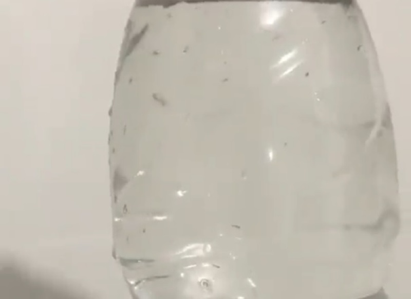 Un vecino de 18 y 47 compartió en su Twitter una botella con agua, donde se pueden ver partículas en movimiento, o también pequeños seres vivos.