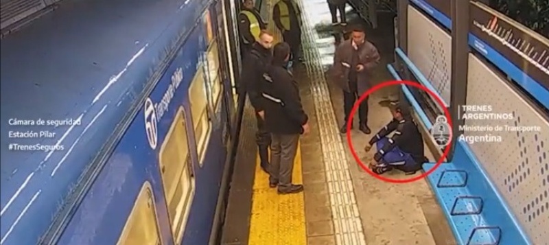 El hecho fue interceptado por las cámaras de seguridad desde el Comando Trenes Seguros. El operador de turno al ver la situación solicitó al personal de seguridad que se acerque a ambos individuos.