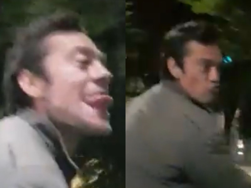 En las imágenes compartidas en Twitter, se puede ver como un hombre en motocicleta se acercó a un auto y comenzó a gritarle y sacarle la lengua al conductor. “Le frenamos atrás, giró la cara 360 re alienígena y nos sacó la lengua. Después nos empezó a seguir de costado”, relató uno de los testigos.