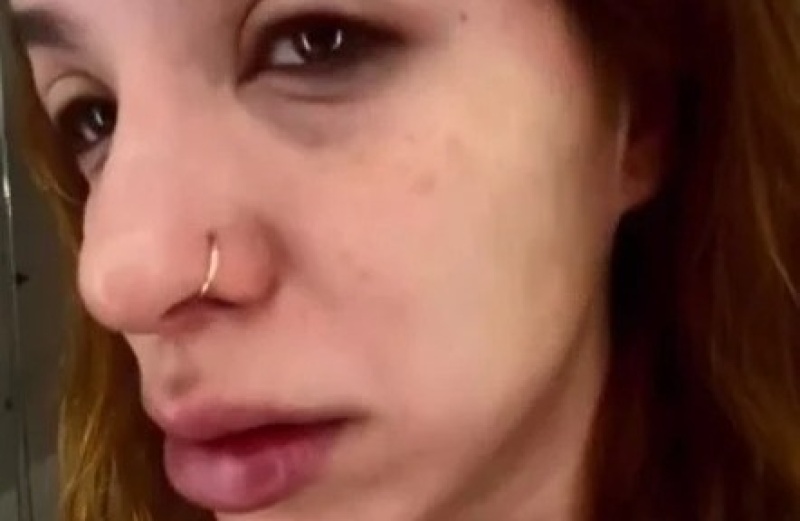 Además mostró todos los lados de su rostro y está super hinchada, todavía no sabe si es una reacción alérgica o un severo estrés.