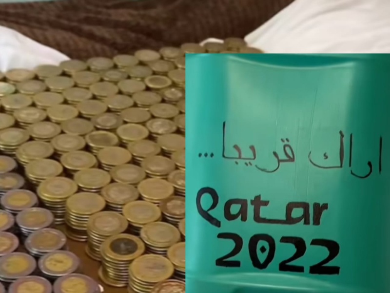 Las monedas las juntaron dentro de un bidón de plástico que llevaba escrita la leyenda “Qatar 2022”, el cual rompieron con un cuchillo mientras un miembro de la familia registraba todo con su cámara. Luego el video fue subido a las redes sociales y se hizo viral.