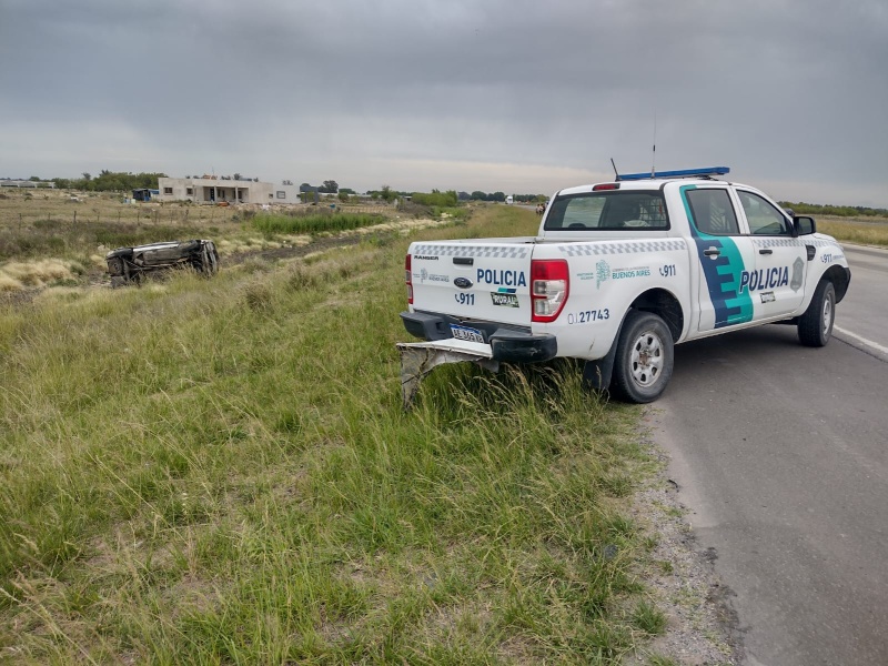 Dos vecinos de La Plata a bordo de un Peugeot 504, chocaron la parte trasera de un móvil del Comando de Prevención Rural a la altura del kilómetro 33 en la Ruta 6.