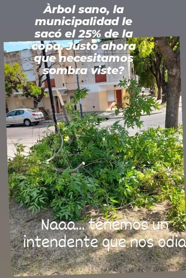 “Imagínate una ciudad sin sombra en la calle” dijo una usuaria y apuntó: “Árbol sano, la municipalidad le sacó el 25% de la copa. Justo ahora que necesitamos sombra”