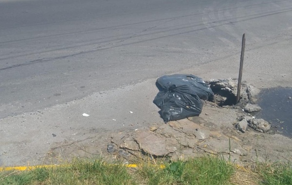 Para evitar accidentes, los frentistas decidieron colocar palos y bolsas para que llame la atención la presencia del mismo.