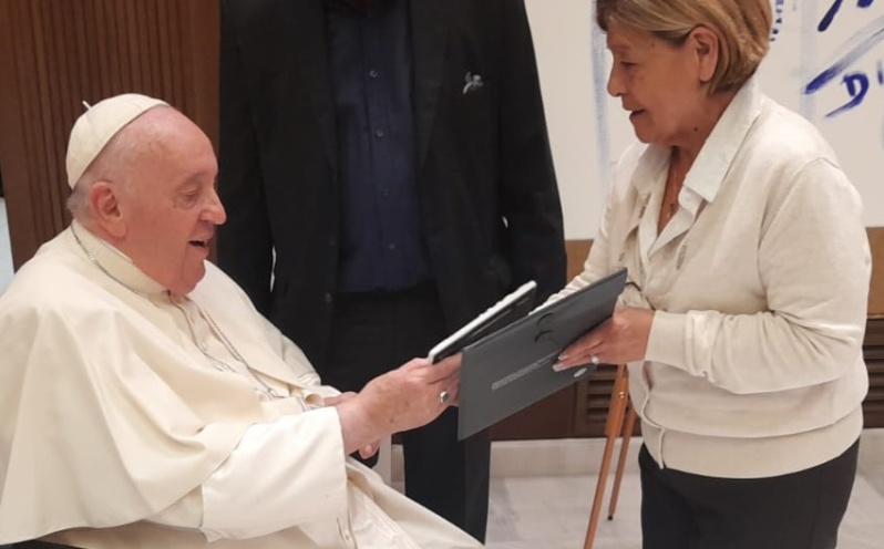 Pero el intercambio simbólico no culminó allí. Rita le tenía preparada una sorpresa muy especial. La foto de Diego con las hermanas durante la última Navidad que disfrutó, antes de su muerte, en noviembre de 2020. El Sumo Pontífice la tomó entre sus manos, la miró, la posó sobre su pecho y la abrazó. Y la emoción embargó a todos en la sala.