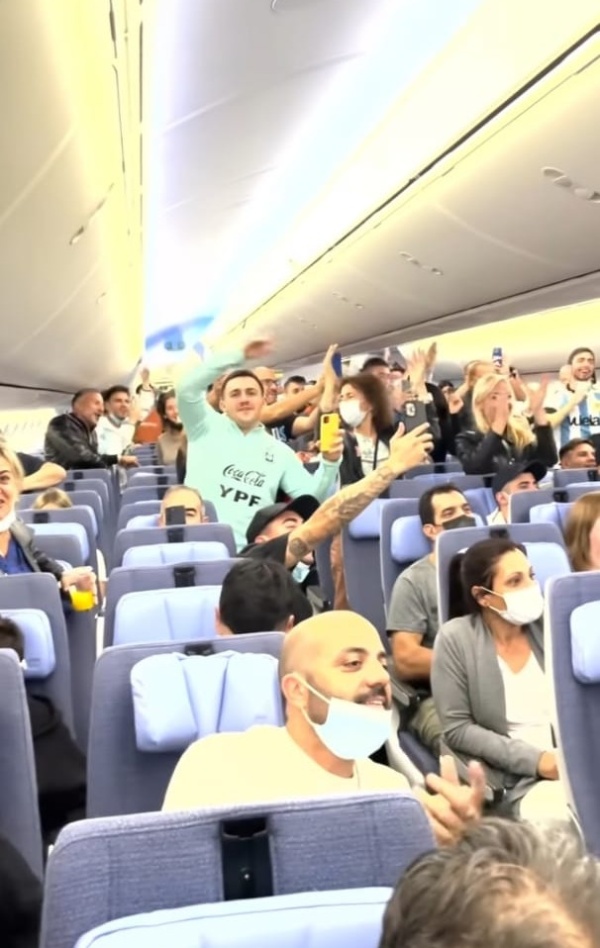 Realizó una interpretación del himno nacional argentino con su armónica para la tripulación y los pasajeros del avión, que se veían muy felices y filmaban toda la serenata.