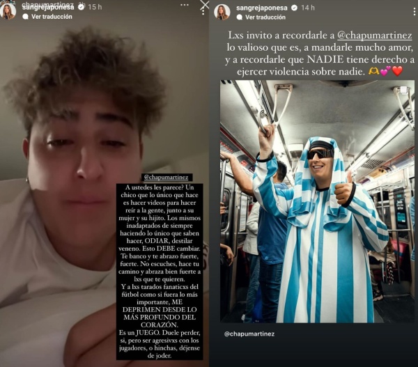 Además, hizo una historia totalmente dedicada al influencer y para promover que le den más cariño: “Los invito a recordarle a Chapu lo valioso que es, a mandarle mucho amor y a recordarle que nadie tiene derecho a ejercer violencia sobre nadie", cerró.