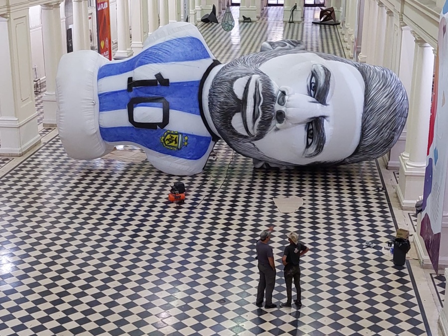 Los artistas contaron también que este trabajo les llevo casi tres meses: “trabajos todos los días, todo el día”, y detallaron que usaron alrededor de 700 metros de tela para realizar el inflable con la cara del capitán, lo cual llevó una inversión de 2.5millones de pesos en materiales.