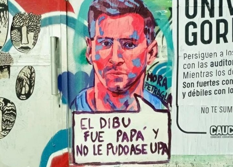 La última intervención que hizo fue la del meme súper viral de Messi en su discurso hacia sus compañeros, donde mencionó rápidamente la situación de Dibu Martinez: “El dibu fue papa y no le pudoase upa”.