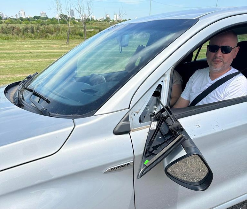El hombre a bordo de la moto le hizo un gesto de que iba a pegarle un tiro y después se quitó el casco para darle un golpe y romperle el espejo retrovisor lateral izquierdo.