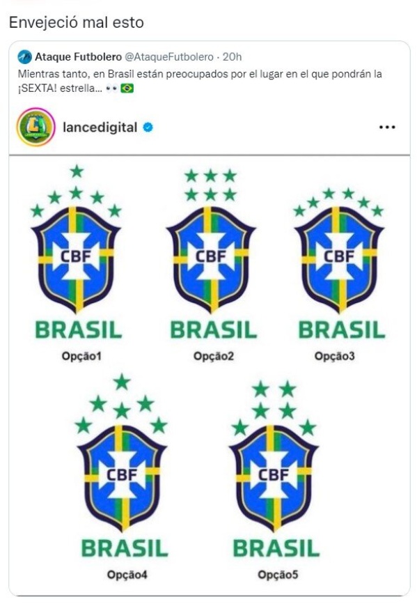 La Canarinha se quedó con el sabor amargo por no conseguir la anhelada sexta Copa del Mundo. En este contexto, los hinchas argentinos remarcaron lo rápido que "envejeció" la imagen difundida en las redes por varios medios brasileños donde consultaban a los usuarios dónde pondrían la "sexta estrella" en el escudo de su selección.