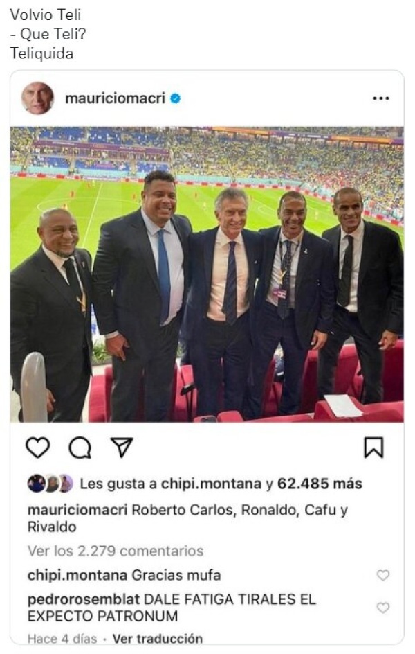 Muchos manifestaron el deseo de que el seleccionado croata venciera a Brasil para evitar un posible cruce con estos en semifinales. Casualidad o no, un usuario remarcó la presencia de un expresidente argentino en el estadio de Doha y bromeó sobre su probable influencia en el resultado final...