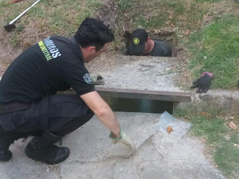 Todo sucedió cuando a un vecino de Villa Elisa se le cayó el gato a la cloaca general y los bomberos tuvieron que salir a socorrer al animal.