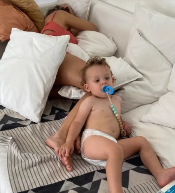"Mi cerdo hermoso, haciéndome compañía", decía el texto junto a la foto de ella acostada en el sillón, mientras que a sus pies se encontraba su primer hijo Donatello.El embarazo la tiene cansada y su marido decidió fotografiarla durmiendo junto a su hijo.