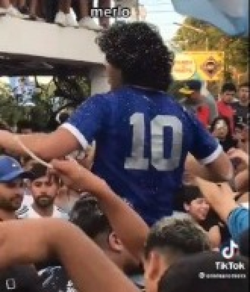 En este caso, un hombre que es idéntico a Diego Armando Maradona se hizo presente en los festejos por el pase a la final de la copa del mundo.