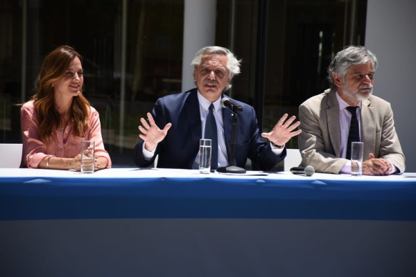 El Presidente de la Nación, Alberto Fernández, estuvo en los edificios del Instituto de Física de La Plata y el Centro de Química Inorgánica junto a la Ministra de Desarrollo Social, Victoria Tolosa Paz, el Ministro de Ciencia, Tecnología e Innovación Productiva de la Nación, Daniel Fimus, el Ministro de Producción, Ciencia e Innovación Tecnológica de la Provincia, Augusto Costa, la presidenta del CONICET, Ana María Franchi y el presidente del área académica de la Universidad Nacional de La Plata, Fernando Tauber.