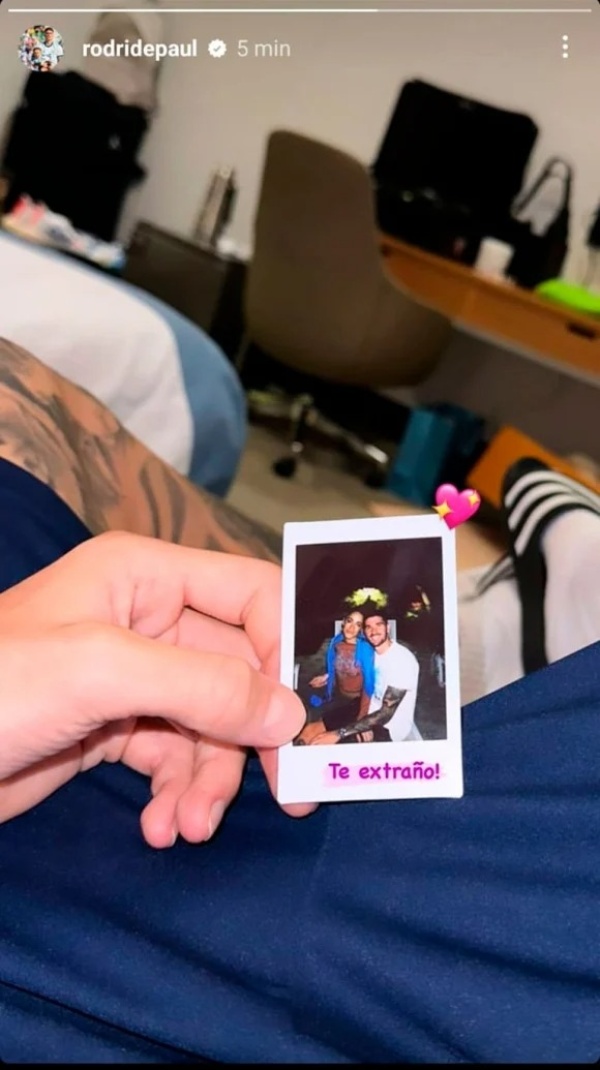 "Te extraño", posteó el mediocampista surgido de las inferiores de Racing Club en una imagen que mostraba una pequeña foto instantánea que se había tomado junto a la cantante.
