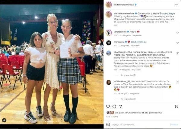 "Qué emoción y alegría @cubero.allegra. ¡¡Feliz y orgullosa de vos!! Termina una etapa y empieza otra nueva. Siempre voy a estar para acompañarte y apoyarte en tu camino de crecimiento y aprendizaje. ¡Te amo hija!", exclamó Nicole Neumann en su conmovedor mensaje a su hija mayor.