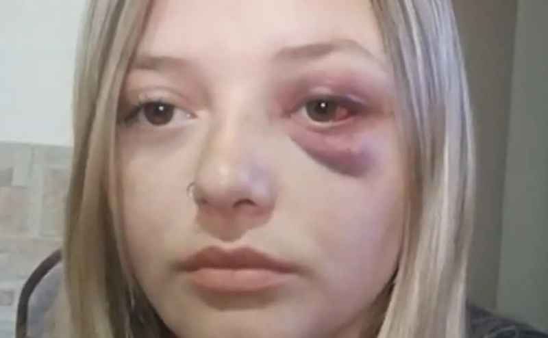 Cuando ella intentó sacar a su amiga de ese lugar, Bruschi le pegó una brutal trompada de costado, casi de espaldas, que la terminó tirando contra la gente. Agustina hoy tiene la marca de la agresión en su cara.
