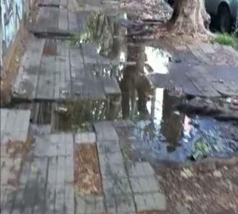 Además, afirma que sobre la calle 57 entre 115 y 1, faltan gran cantidad de baldosas, lo que permite que se acumule mucha agua sea producida por la lluvia, o también porque hay un desborde de cañería.