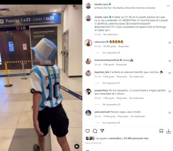 “A Qatar!!!!! No te lo puedo explicar porque no lo vas a entender!!!!! ARGENTINA!!!! Una promesa se cumple!!! Que cumpleaños te espera Coki el Domingo en Qatar!!!”, escribió en sus redes.