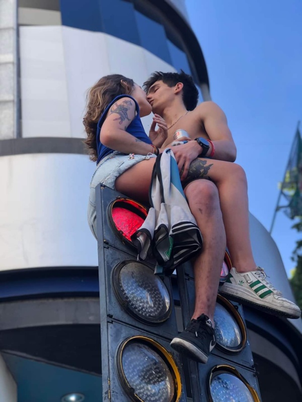 La imágen fue compartida en las redes sociales, dónde cientos de vecinos mostraron su alegría por ver qué los chicos que se dieron el beso en el semáforo de 7 y 50 se volvieran a encontrar.