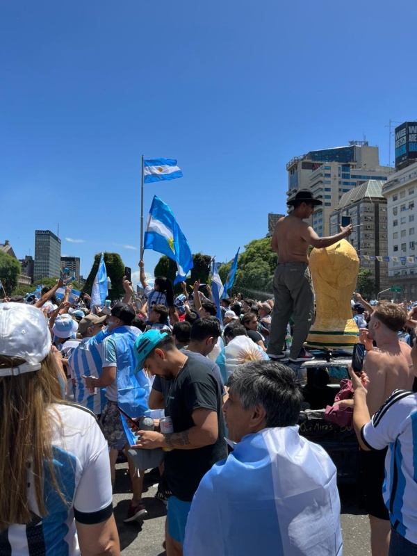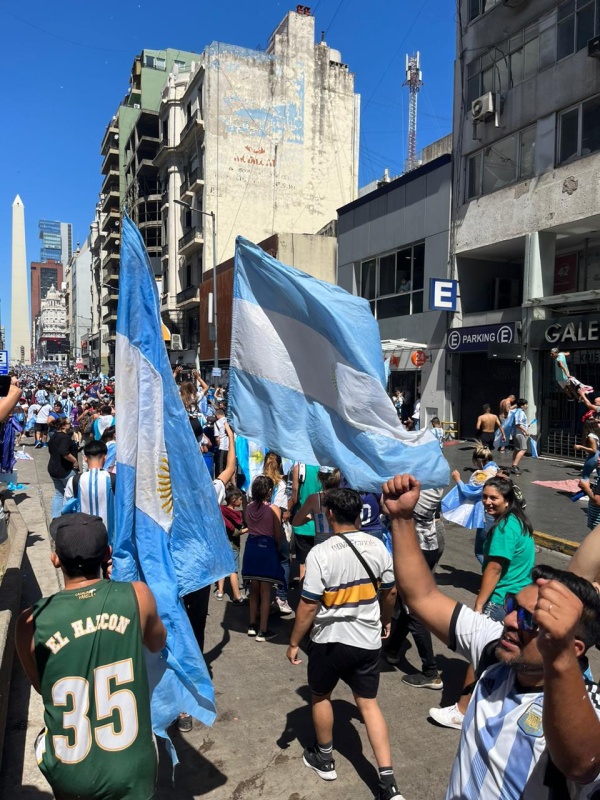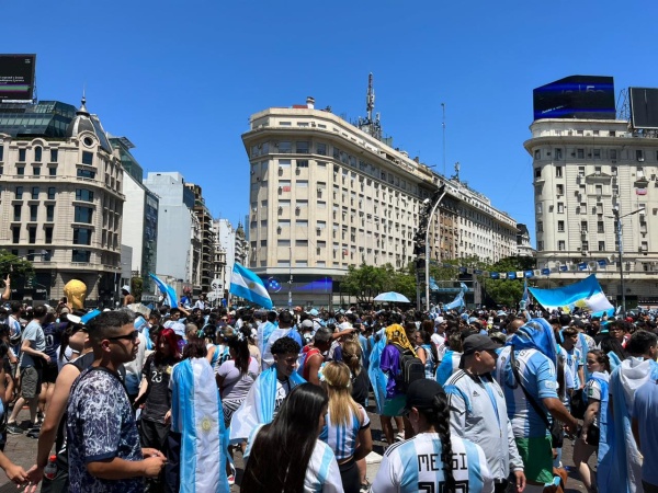 Como en todo el país, varios son los puntos de encuentro que usan los hinchas argentinos para vivir el campeonato ganado en el Mundial de Qatar 2022. El Obelisco, como siempre, en la posición número uno de estos espacios donde se une el fanatismo deportivo y el amor a una Selección que lo dio todo de principio a fin.