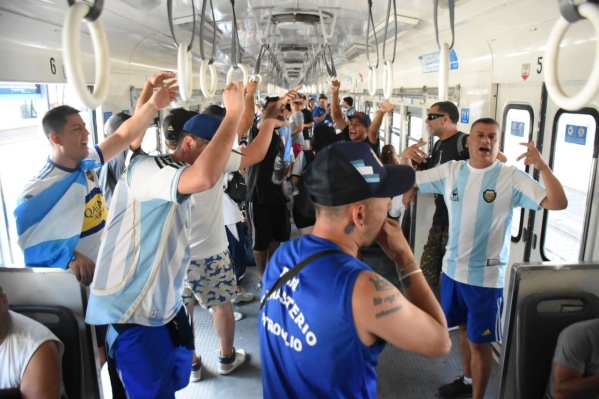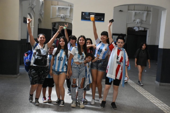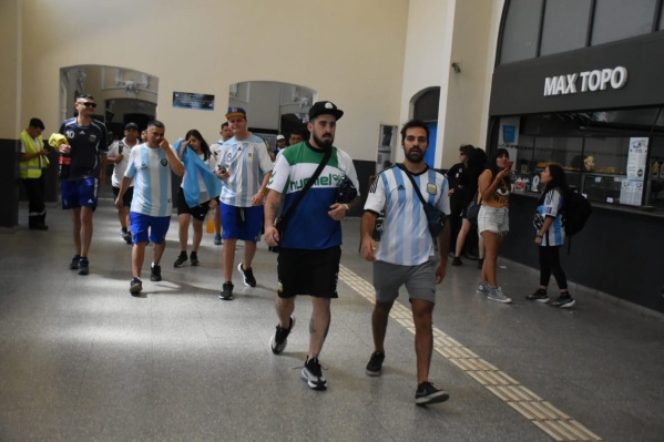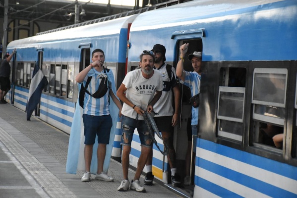 El ramal Roca de la estación de La Plata las formaciones salen cada 40 minutos, y desde las 8 de la mañana que van estallados de hinchas fanáticos hacía los festejos con los jugadores de la Selección.