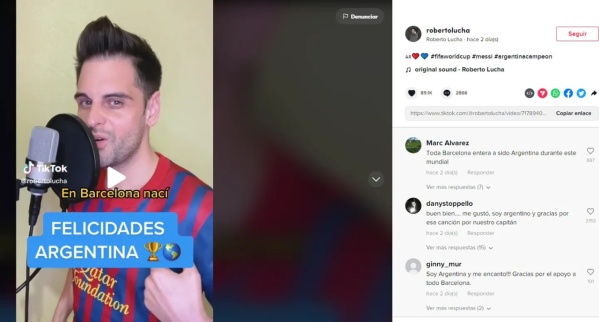 Por ejemplo, en Barcelona, un cantante llamado Roberto Lucha la grabó con una letra distinta donde recuerda los logros de Messi en dicha institución, las frases “¿Qué mirás bobo? Andá pa allá”, el “messiento”, y un reconocimiento para nuestra Selección. El cantante también es conocido por los videos que publica en su cuenta de TikTok.
