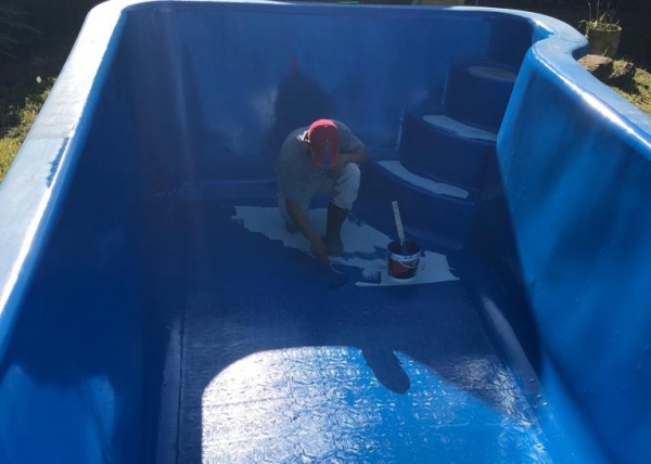 “Decidí hace 2 años arrancar con la reparación de piletas de fibra y de cemento, sin ninguna herramienta. Era todo a pulmón”, cuenta Pablo. Ahora, con la bomba, todo se simplifica un poco más.